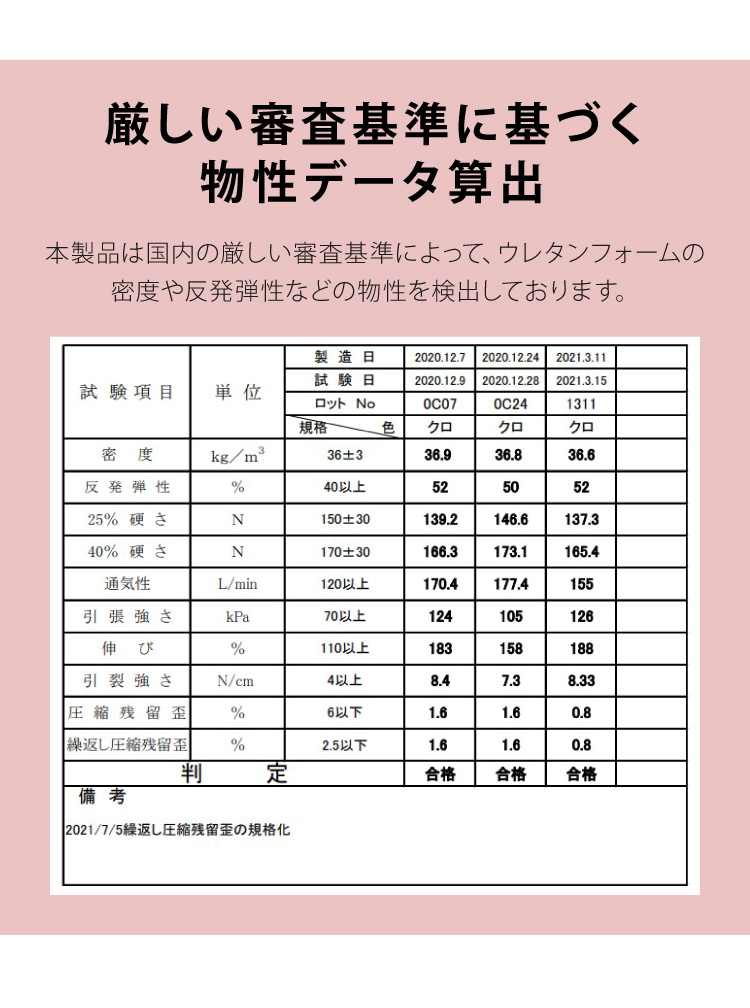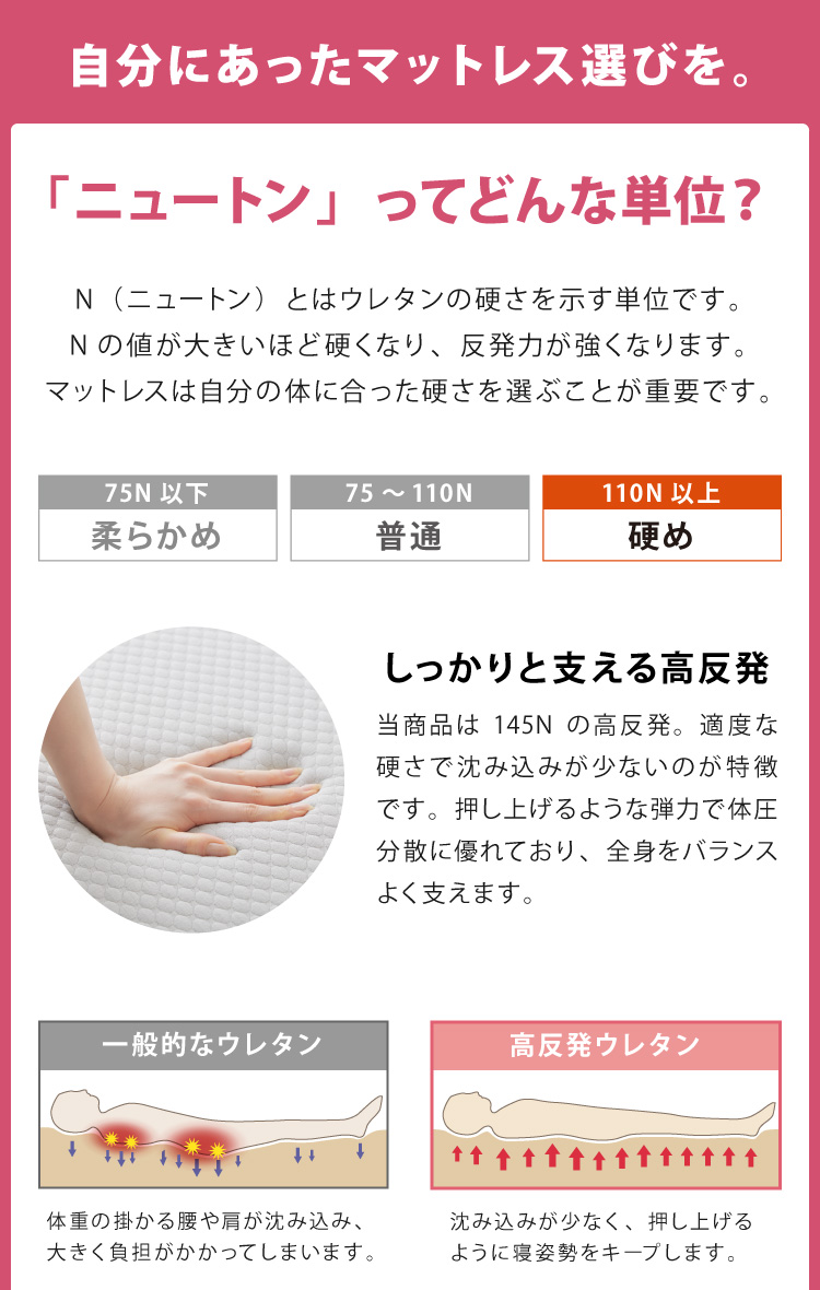日本の職人のプライドが結集した一品。反発弾性50%以上の商品で、寝返りがスムーズに促進します。