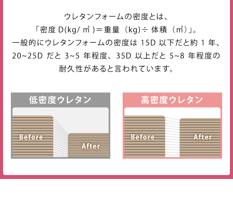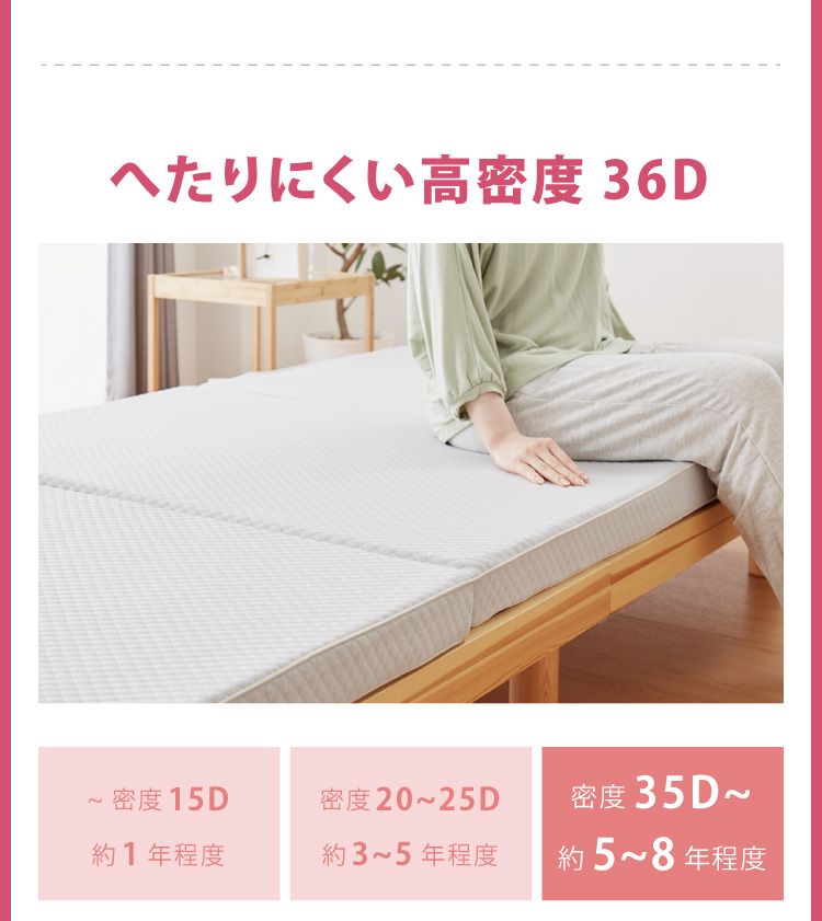 また、高密度36Dのウレタンを使用。通常5〜8年の耐久性があります。