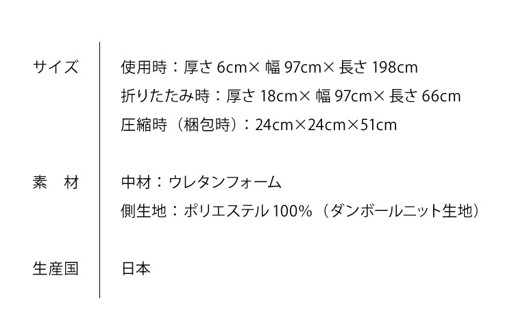 使用時:厚さ6cm×幅97cm×長さ198cm