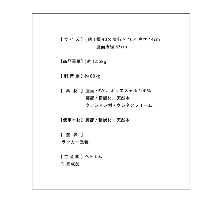 (約)幅40×奥行き40×高さ44cm座面直径33cm