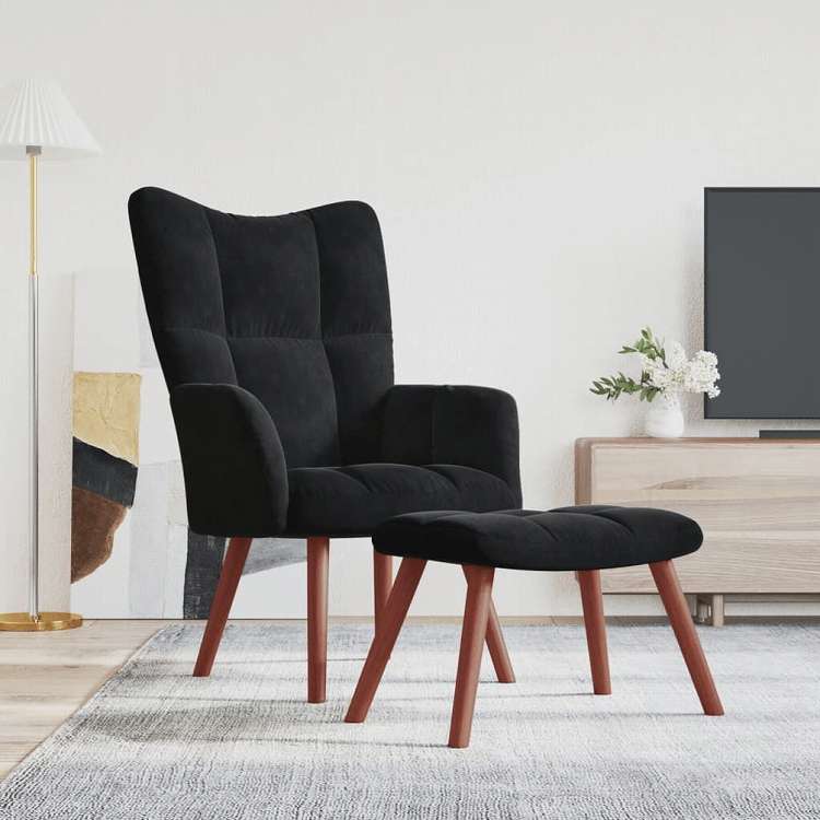 vidaXL リラックスチェア スツール付 ブラック ベルベット家具 チェア アームチェア・リクライニングチェア・スリーピングチェア 代引不可
