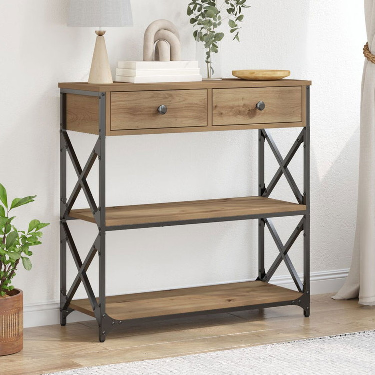 vidaXL コンソールテーブル アーティザンオーク 75x28x75 cm エンジニアードウッドとスチール 家具 テーブル アクセントテーブル エンドテーブル 代引不可