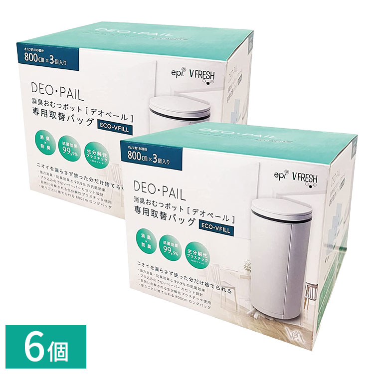 おむつ処理用ゴミ袋 詰替レフィル 6個入り 詰替カセット 臭わない 防臭 消臭 約40回分×6個 DEO・PAIL デオペール 代引不可