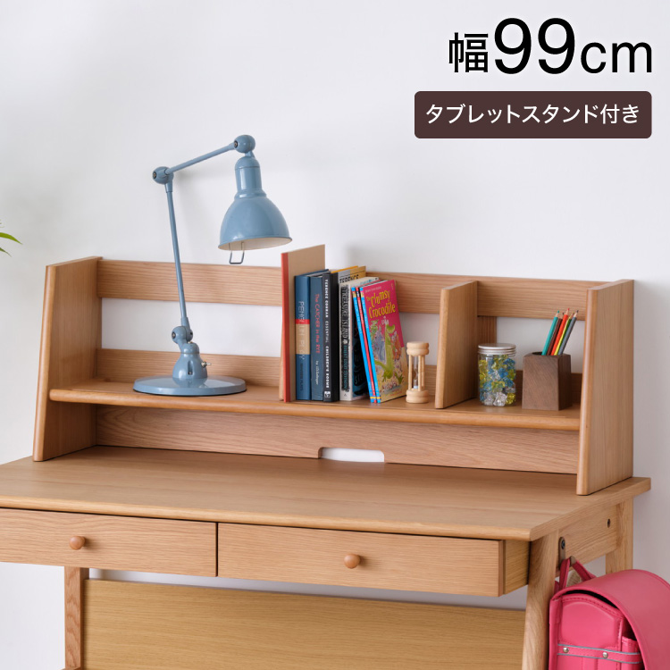 一生紀 デスク用上棚 ブックスタンド タブレットスタンド付き 卓上本棚 単品 コード穴 配線スッキリ オーク材 デスクラック おしゃれ ナチュラル 代引不可