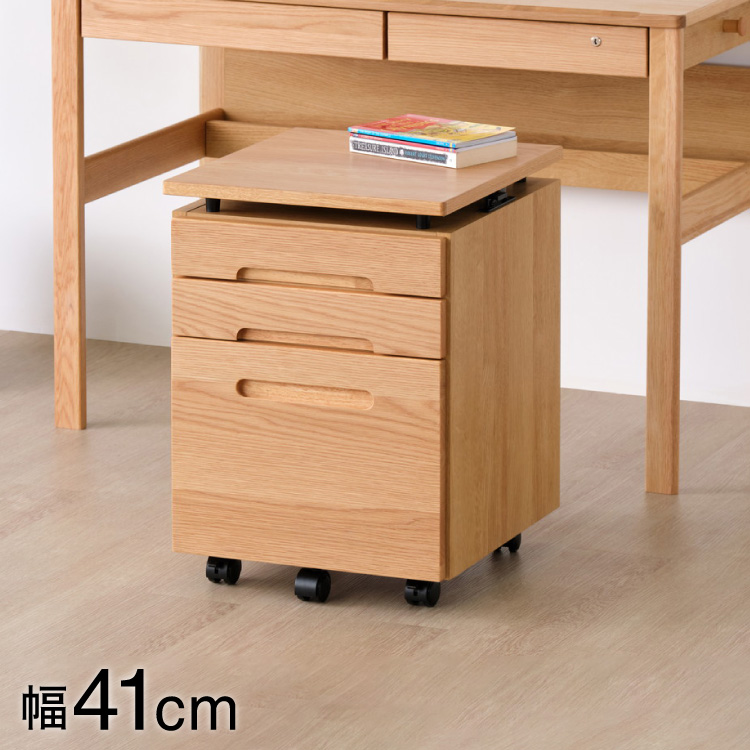 一生紀 デスクワゴン 完成品 天板昇降 オーク材 ワゴン単品 キャスター付き チェスト 引き出し 収納 サイドワゴン プリンター台 プリンターワゴン 代引不可