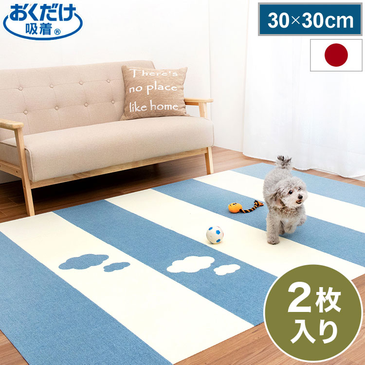 サンコー おくだけ吸着 おあそびマット 2枚入 雲 タイルマット はっ水 滑り止め 洗える 撥水タイルマット 撥水マット ジョイントマット ペット