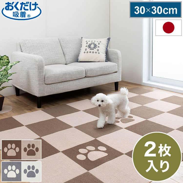 サンコー おくだけ吸着 おあそびマット 2枚入 肉球 タイルマット はっ水 滑り止め 洗える 撥水タイルマット 撥水マット ジョイントマット ペット
