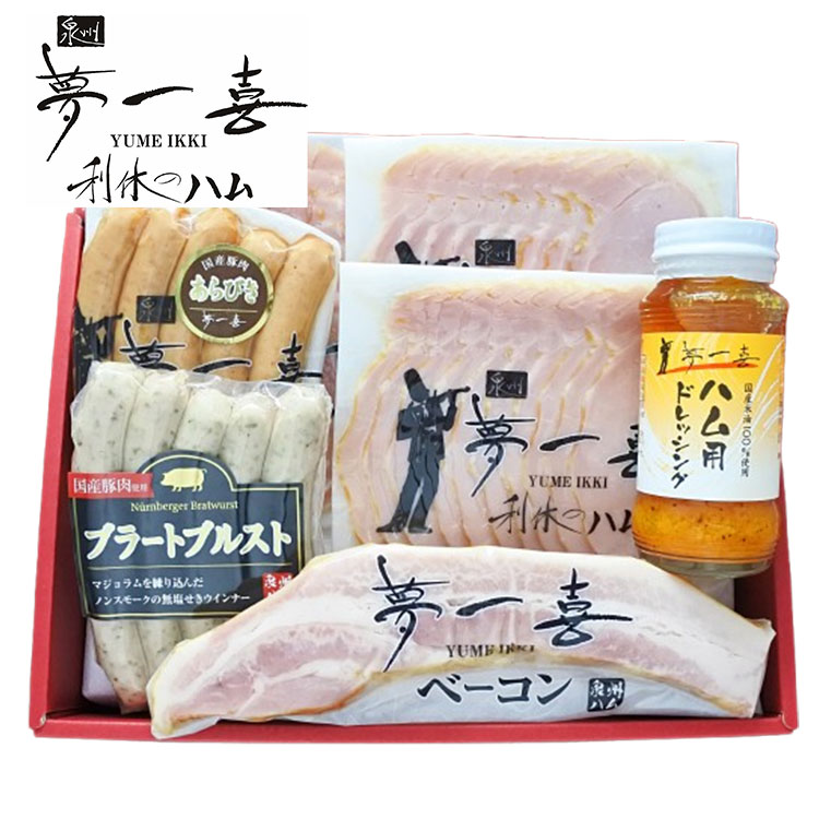 大阪 「夢一喜」 熟成ハム・ウインナー 詰合せ 7個 ハム ベーコン ウィンナー ドレッシング 冬ギフト お年賀 代引不可