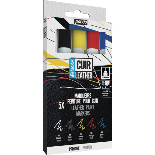 Pebeo セタカラーレザー 革用 マーカー プライマリーカラー 赤 青 黄 白 黒 5色セット 295687 工事 照明用品 塗装 内装用品 塗料 代引不可