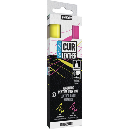 Pebeo セタカラーレザー 革用 マーカー 蛍光色イエロー&ピンク 2色セット 295686 工事 照明用品 塗装 内装用品 塗料 代引不可