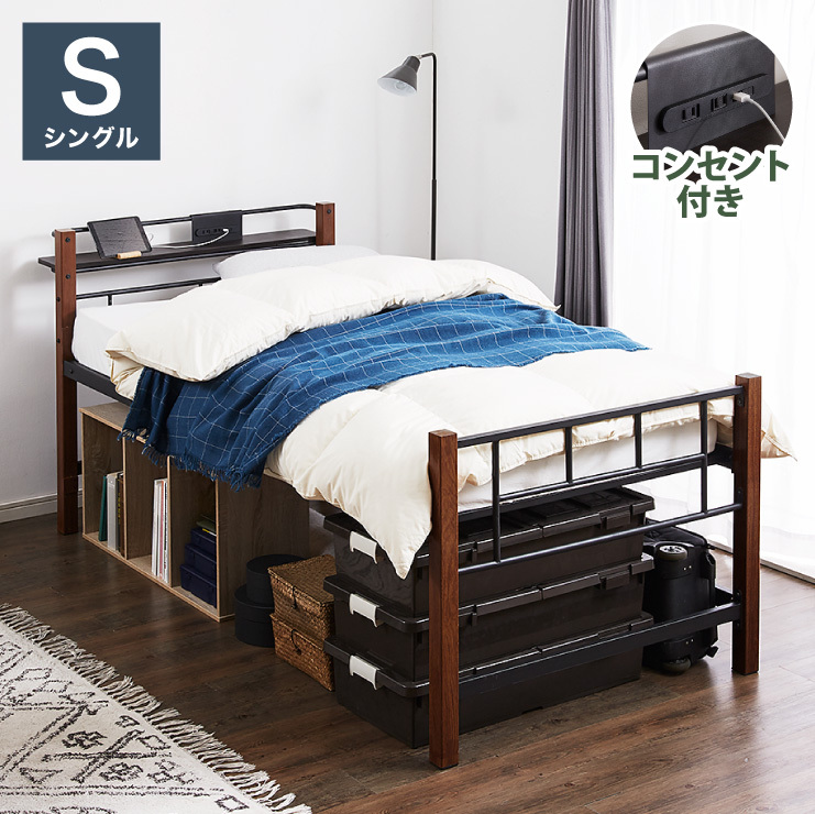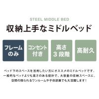 高さ3段階調整 ミドルベッド シングル 宮付き コンセント付き 通気性抜群 収納力 パイプベッド ベッドフレーム単品 ベッド