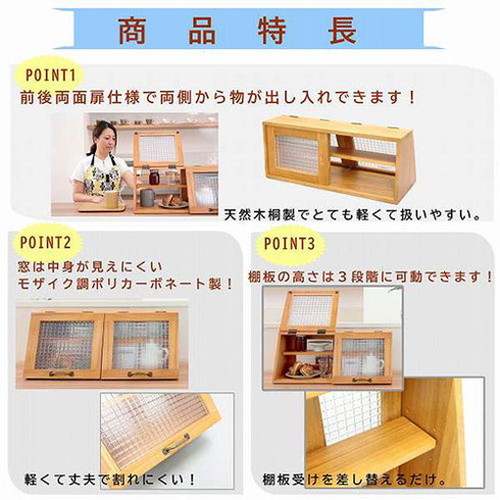 【商品仕様】・材質 : 本体…天然木桐材(ラッカー塗装)、扉…ポリカーボネート、取っ手…亜鉛合金
