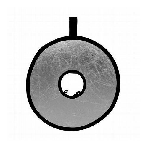 接写やガラス越しの撮影時に重宝する、穴あきタイプのレフ板。シルバーとホワイトのリバーシブルタイプ。
