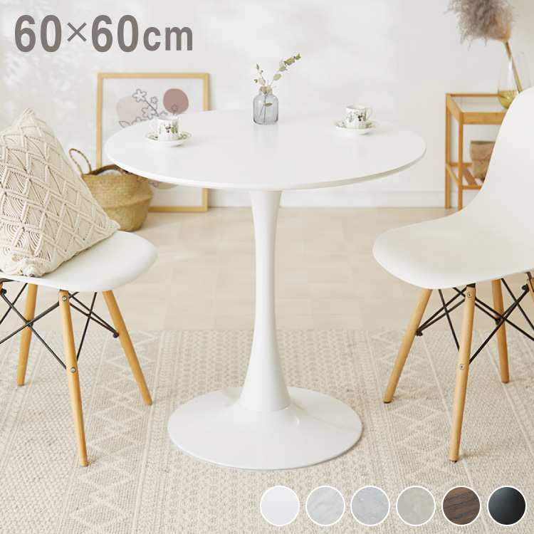 ダイニングテーブル 丸テーブル 白 幅60cm 組み立て簡単 お手入れ簡単 円形 スチール MDF ホワイト 省スペース コンパクト 2人用 3人用 おしゃれ