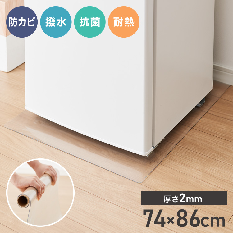冷蔵庫マット PVC XXL 74×86cm 2mm厚 フリーカット 防カビ 抗菌 床保護 キズ防止 防汚 撥水 防水 床暖房対応 600L以上冷蔵庫対応 冷蔵庫パネル