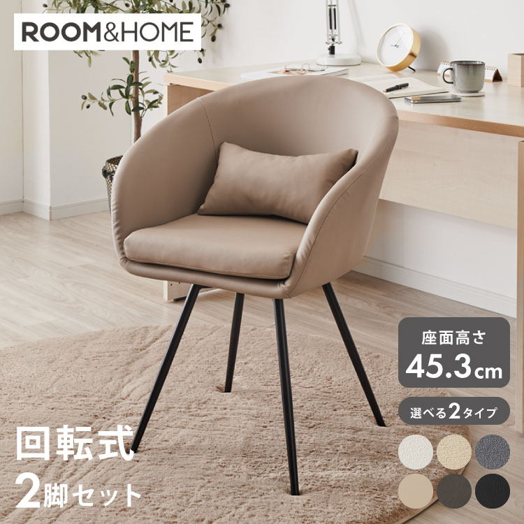 roomnhome×リコメン堂 ダイニングチェア 回転 肘付 2セット 選べる6タイプ レザー ブークレ セントラルラウンダチェア おしゃれ 回転式 回転椅子