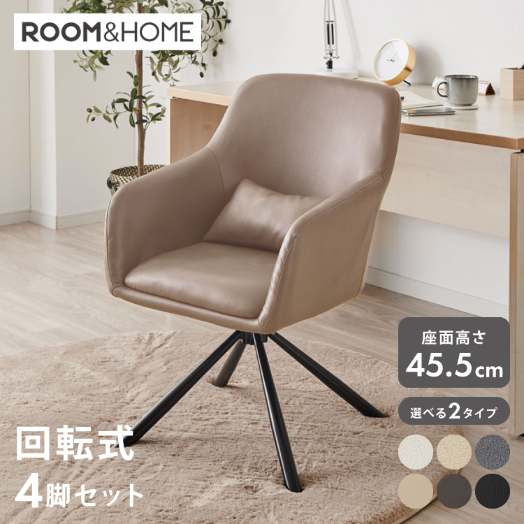 roomnhome×リコメン堂 ダイニングチェア 回転 肘付 4セット 選べる6タイプ レザー ブークレ ラウンディンチェア おしゃれ 回転式 回転椅子