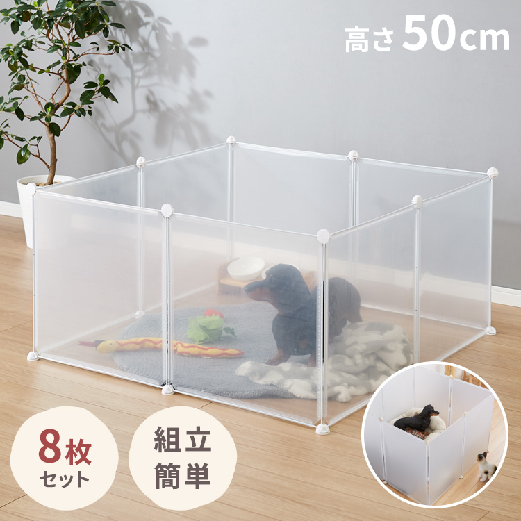 ペットフェンス 透明 50×50cm 半透明 ジョイント式 組立簡単 防水 置くだけ 折りたたみ 脱走防止 滑り止め ペットサークル ペットハウス