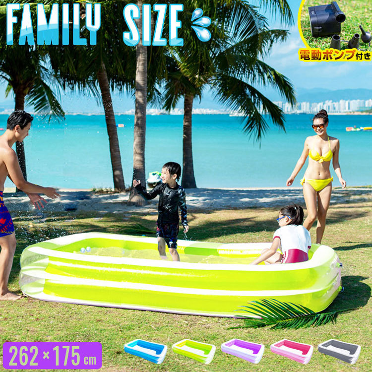 プール ビニルプール 大型 ノーマル ポンプ付き 2.6m×1.7m 家庭用プール ファミリープール 大型プール キッズプール ガーデンプール レジャープール エアープール プレイプール 家庭用 屋外用 ビッグサイズ 長方形 特大 子供 キッズ 大人 水遊び 家族 プレゼント 夏休み 庭 いけす 釣堀 イベント 水風呂 アウトドア サウナ テントサウナ ビッグ ビッグサイズ ビニールプール ファミリープール ガーデンプール 供用プール 子ども用プール ベランダ 長方形 お風呂 シャワー プレゼント