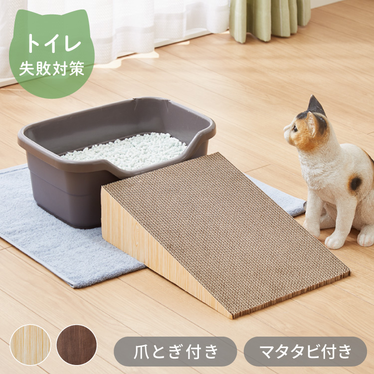 爪とぎ 猫 スロープ 木目調 幅30cm 高さ11cm またたび付 トイレ キャットケージ 段差 強化ダンボール 子猫 シニア猫 老猫 介護 猫スロープ