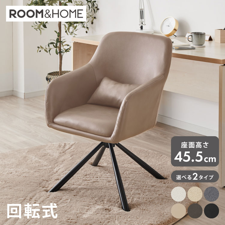 roomnhome×リコメン堂 ダイニングチェア 回転 肘付 選べる6タイプ レザー ブークレ ラウンディンチェア おしゃれ 回転式 回転椅子 回転チェア 椅子