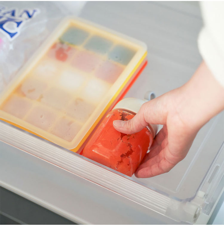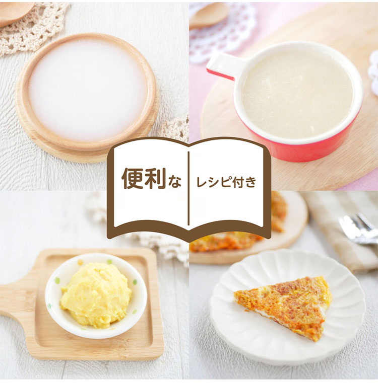 離乳食初期の少量から使用できる容量です。「ちょっと作りたい」、「あと一品追加したい」そんなときに便利なサイズです。