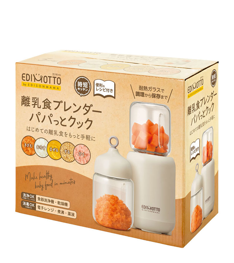 エジソンママ 離乳食ブレンダー パパッとクック そのまま保存 1台5役 冷蔵 冷凍 電子レンジ対応 コンパクト 少量 レシピ付き EDIMOTTO KJ4307