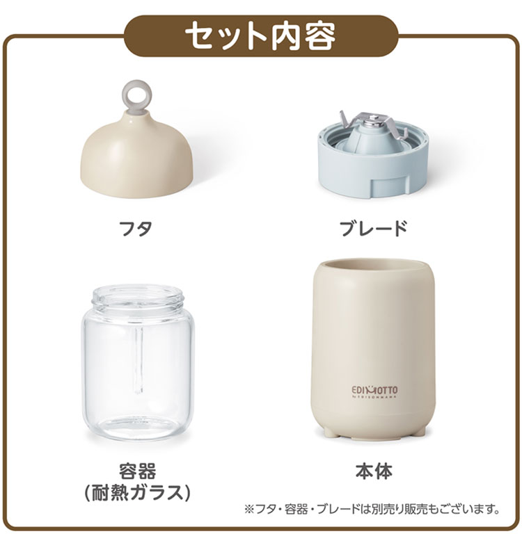 付属品は本体・容器・ブレード・フタのみ。アタッチメントを付け替えたりする必要もありません。