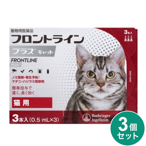 【動物用医薬品】 【3個セット】 フロントライン 猫用 3本入 ノミ ダニ 駆除剤 フロントラインプラスキャット