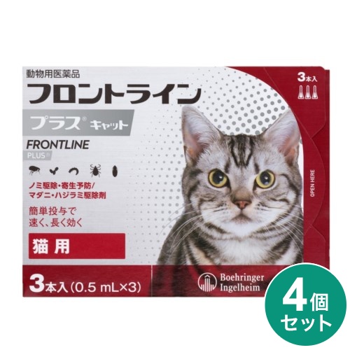 【動物用医薬品】 【4個セット】 フロントライン 猫用 3本入 ノミ ダニ 駆除剤 フロントラインプラスキャット