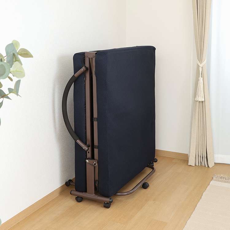毎日の睡眠をサポートする折りたたみ電動ベッド 高床タイプ就寝時だけでなく、TVを見たり食事をしたりなど用途に応じてお好みの角度に調節できます。リモコンはイラスト付きで分かりやすく、操作も簡単です。左右には起き上がりをサポートする手すりがついています。マットレスは8.5cmの厚みがあり、沈み込みすぎず安定した寝心地を楽しめます。メッシュ生地を使用しているため蒸れにくく通気性も◎パタッと2つに折りたたむことができるので、使わないときは省スペースに収納できます。キャスター付きなので気軽に動かすことができます。また、ストッパーで固定できるので安心です。