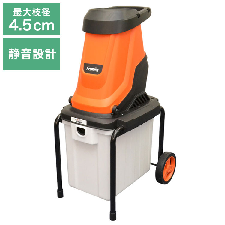 ファミラ シュレッダー 枝 電動 ウッドチップ 粉砕機 強力 ハイパワー 静音 ダストボックス付き 車輪付き 家庭用 園芸 庭 木の枝 処理 ガーデニング 代引不可