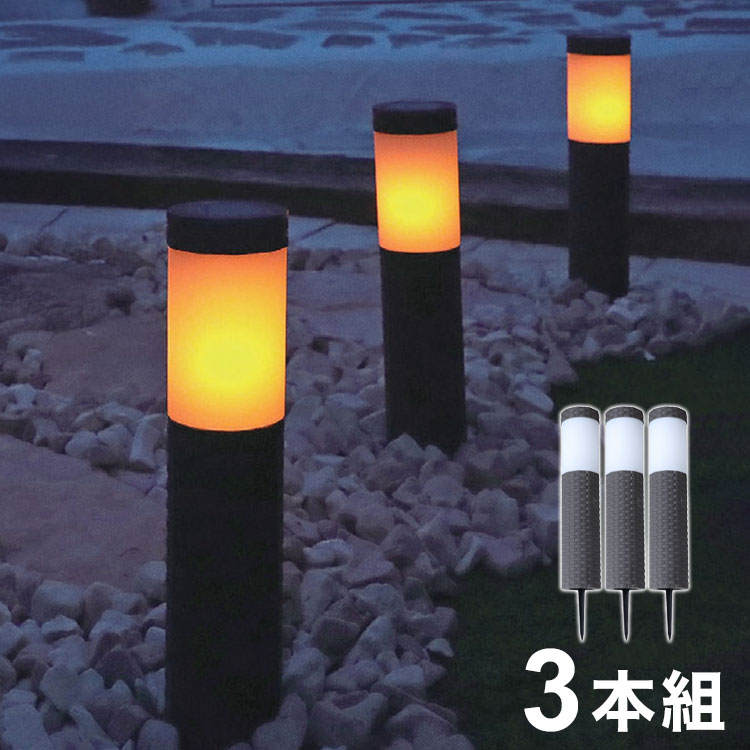 ラタン調ライト3本組 ソーラーライト 屋外照明 ガーデンライト ポールライト 自動点灯 LEDライト 庭用ライト 玄関照明 防犯ライト 簡単設置ライト 代引不可