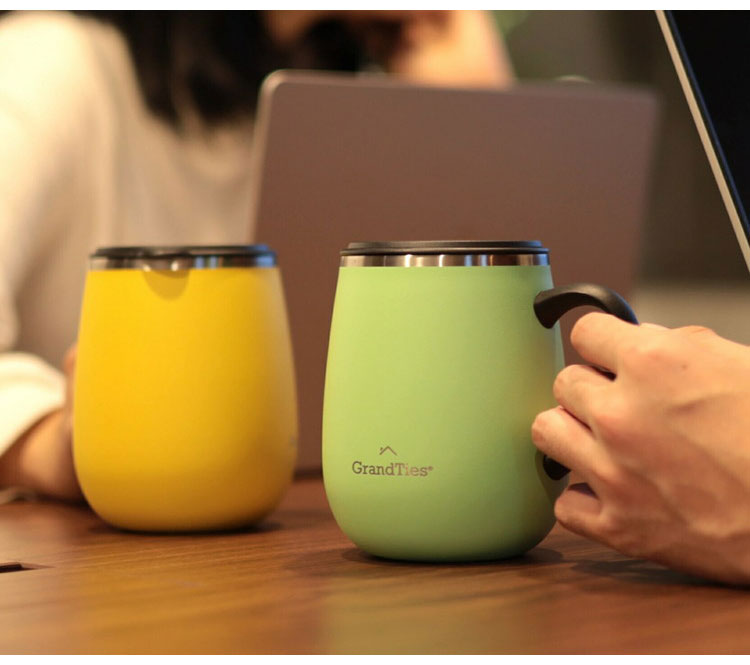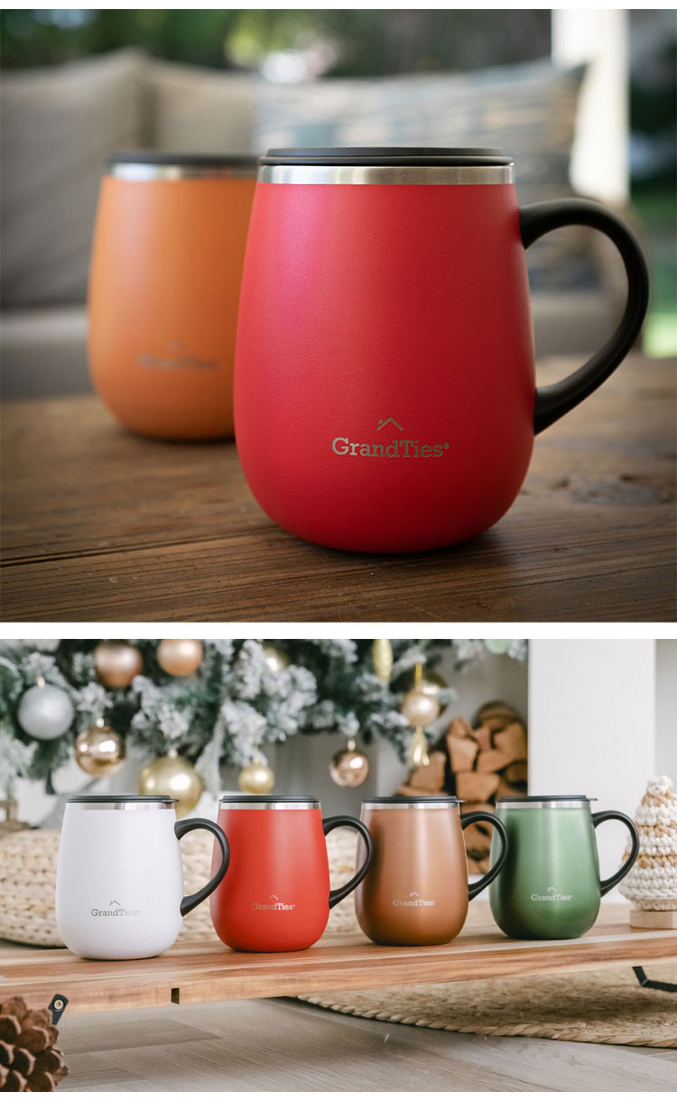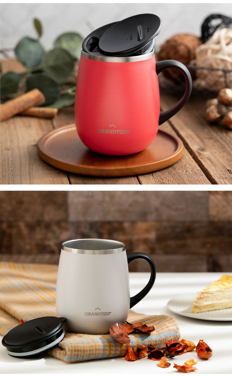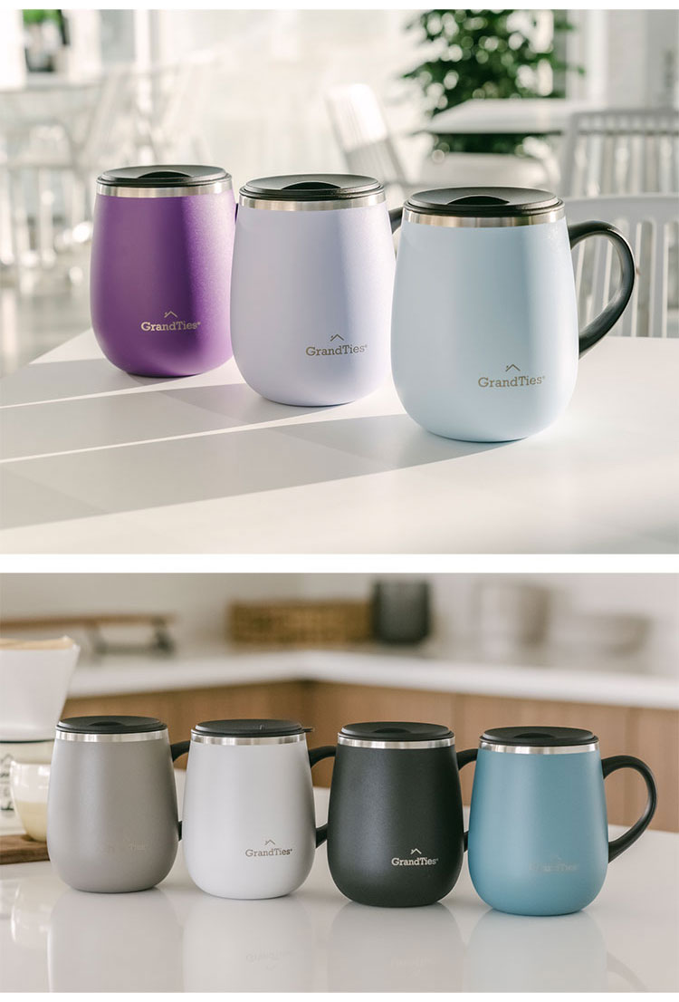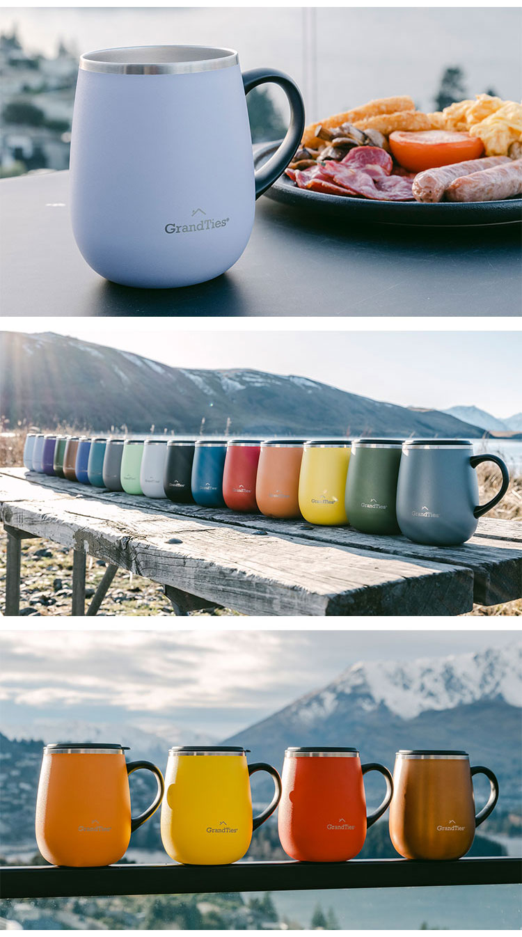 GRANDTIES グランタイズ 全19色 プレミアム真空断熱マグカップ 460ml 簡単開閉スライド蓋付き ステンレス製 二重壁真空断熱構造 保温・保冷機能付き