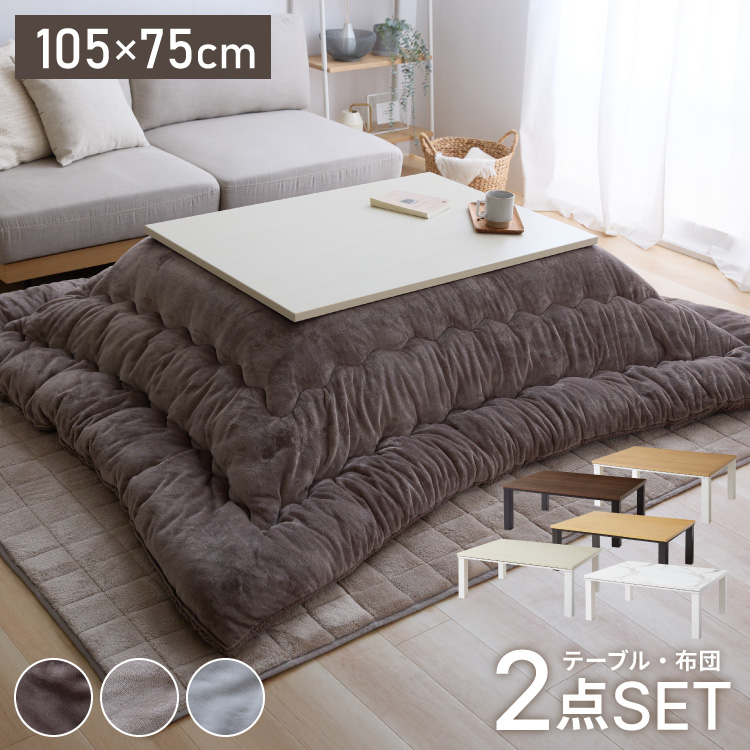 こたつ 105×75 ボリューミー こたつ布団セット 石英管 コタツ こたつテーブル 長方形 こたつセット センターテーブル ローテーブル フランネル 代引不可