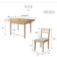 ・80cm、100cm、120cmと3段階で調整できる伸縮ダイニングテーブルのセットです。