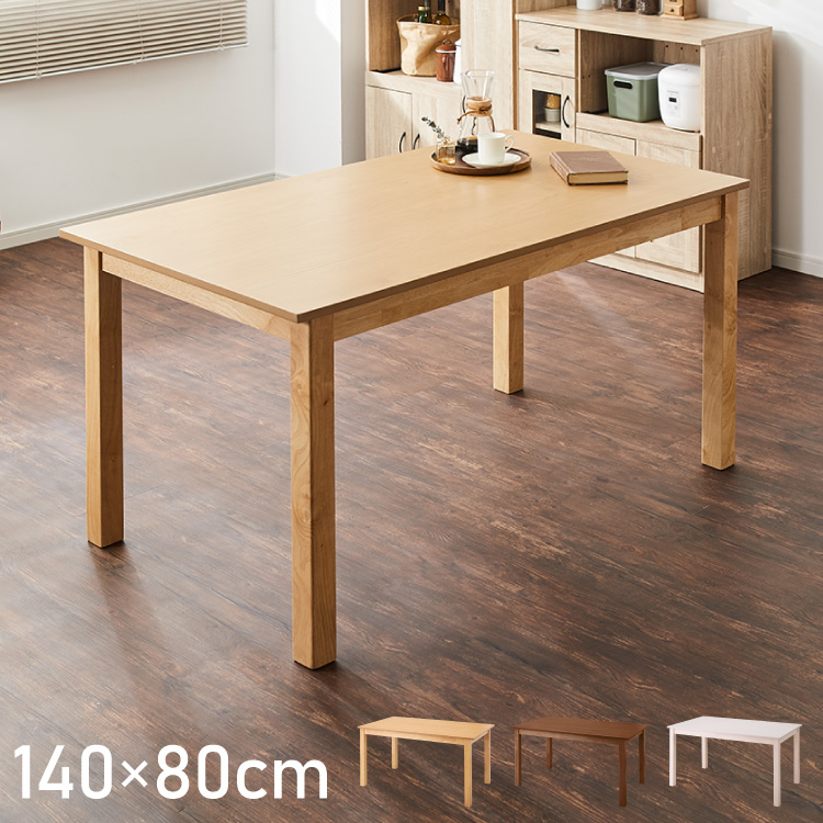 ダイニングテーブル 天然木 幅140 奥行80 4人掛け 大きめ 木目調 ナチュラル 木製 140×80cm ブラウン リビング ダイニング パソコンデスク つくえ