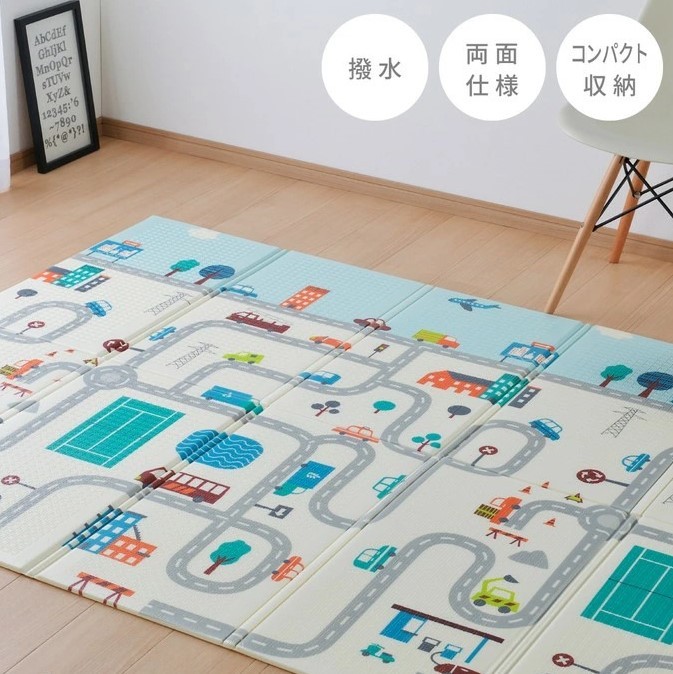 プレイマット 折りたたみ 118×176cm キッズラグ ロードマップ コンパクト収納 子供部屋 道路ラグ 男の子 女の子 赤ちゃん キッズマット 代引不可