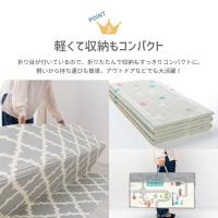 サッとひと拭き、お手入れ楽々。クッション性があり、子供の遊び場にもおすすめなクッションプレイマット。使わない時は折りたたんで収納も簡単。マットがぴったり入る収納袋付き。裏面は木目柄になっていてリバーシブル使用も可能です。