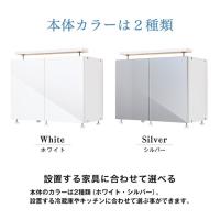 冷蔵庫の転倒防止機能だけではなく、キッチン、冷蔵庫のイメージを損なう事のないEBコーティング鏡面扉のつっぱり転倒防止収納上置です。