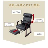 木製肘付リクライニング高座椅子 フットレスト付 ヘッドレスト 肘掛 椅子 高齢者 介護 立ち座り 和室 レバー オットマン 黒 代引不可