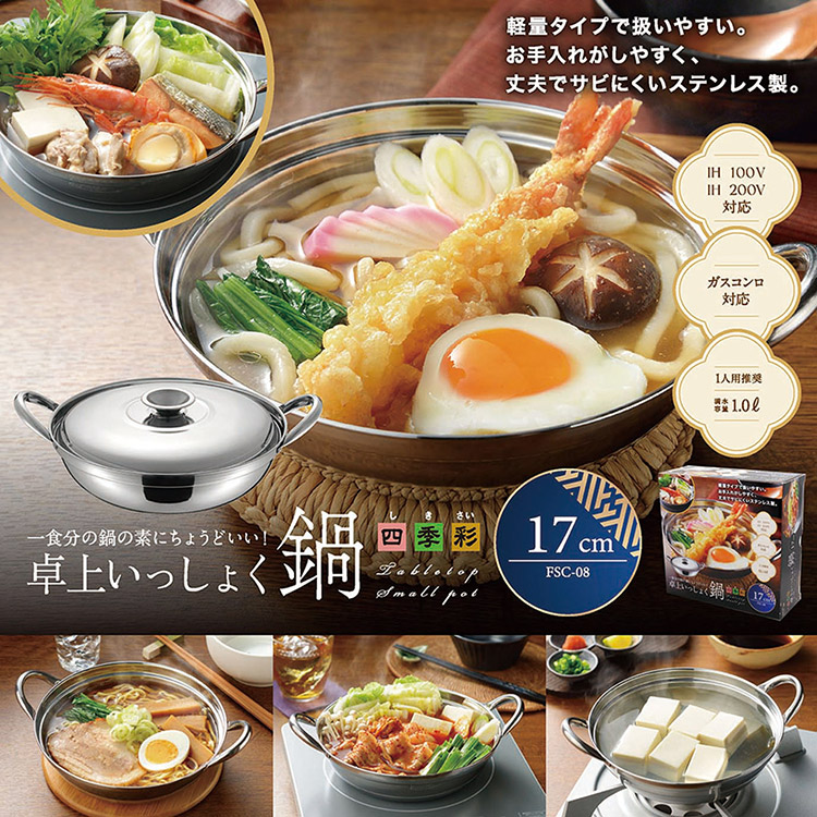 カクセー FSC-08 四季彩 -しきさい-IH対応 いっしょく鍋 17cm 一食分 鍋 ちょうどいい 軽量タイプ 代引不可