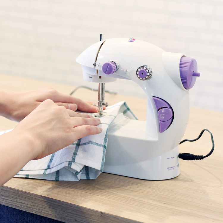 フットペダルで操作も簡単。軽量コンパクトなので持ち運びも片付けも楽々。2段階速度切り替え、ライト付。ミシンをもっと楽しく使えるソーイングキット付。コードの長さ約1.8m。消費電力5W。