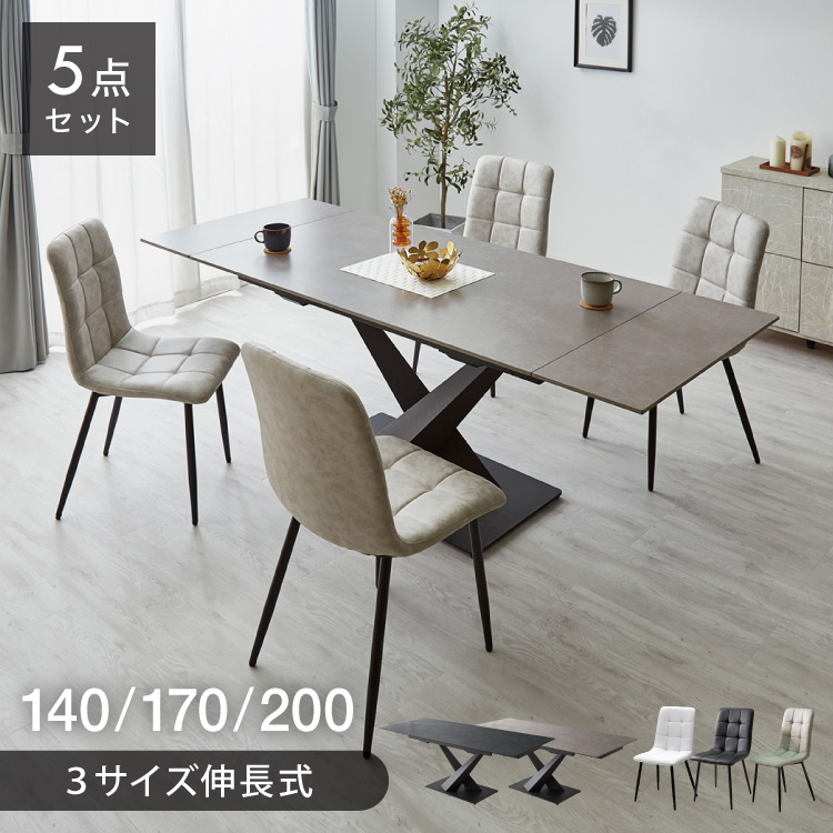 セラミック 両側伸長式ダイニングテーブルセット 幅140~200 伸縮 ダイニング5点セット 4人掛け 伸縮テーブル モダン 伸長式 ダイニング 耐水 耐熱 白 代引不可