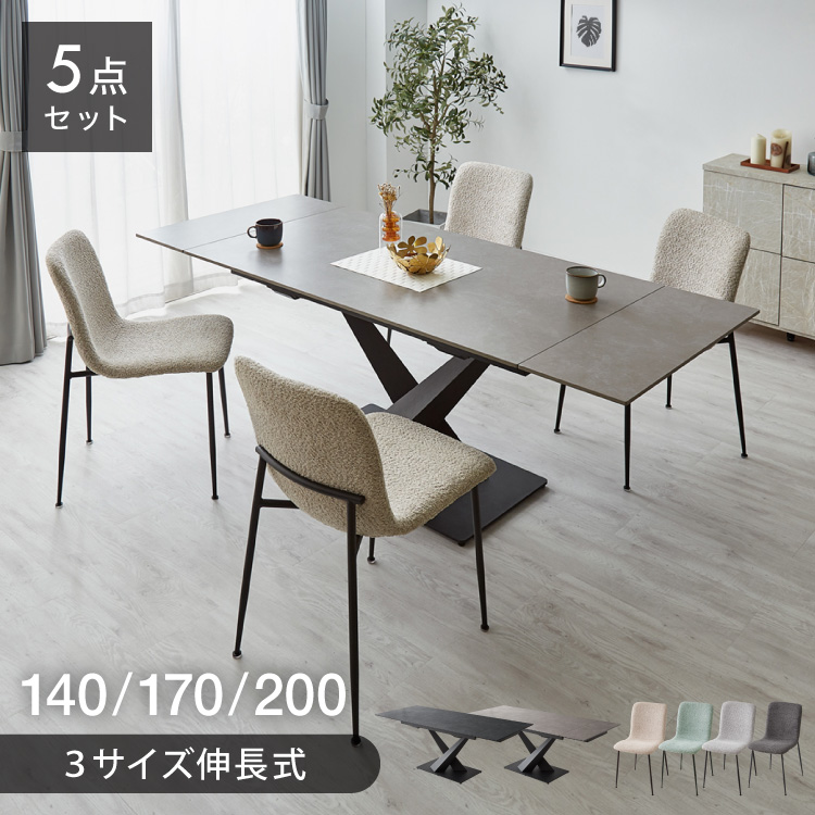 セラミック 両側伸長式ダイニングテーブルセット 幅140~200 伸縮 ダイニング5点セット 4人掛け 伸縮テーブル モダン 伸長式 ダイニング 耐水 耐熱 白 代引不可
