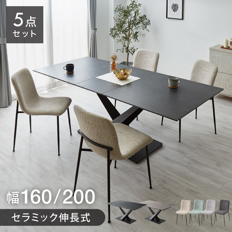 セラミック 伸長式ダイニングテーブルセット 幅160~200 伸縮 ダイニング5点セット 4人掛け 伸縮テーブル モダン 伸長式 ダイニング 耐水 耐熱 白 代引不可