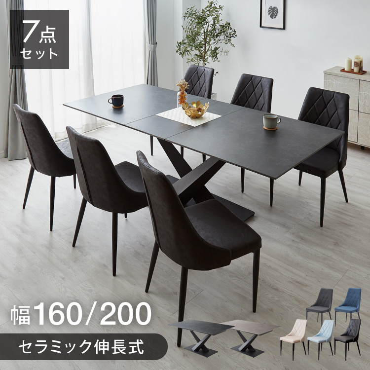 セラミック 伸長式ダイニングテーブルセット 幅160~200 伸縮 ダイニング7点セット 4人掛け 6人掛け 伸縮テーブル モダン 伸長式 ダイニング 耐水 代引不可