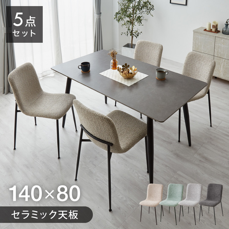 セラミック ダイニングテーブルセット 幅140 ダイニング5点セット 4人掛け テーブル モダン ダイニング 耐水 耐熱 白 艶消し 傷がつきにくい おしゃれ 代引不可