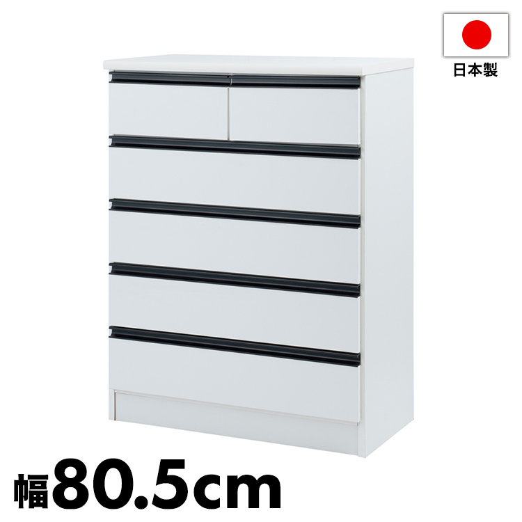 日本製 完成品 大川家具 brash 幅80.5 チェスト ホワイト 白 大容量 ワイド アンティーク モノトーン モダン 箪笥 タンス 高さ103 ハイタイプ 代引不可