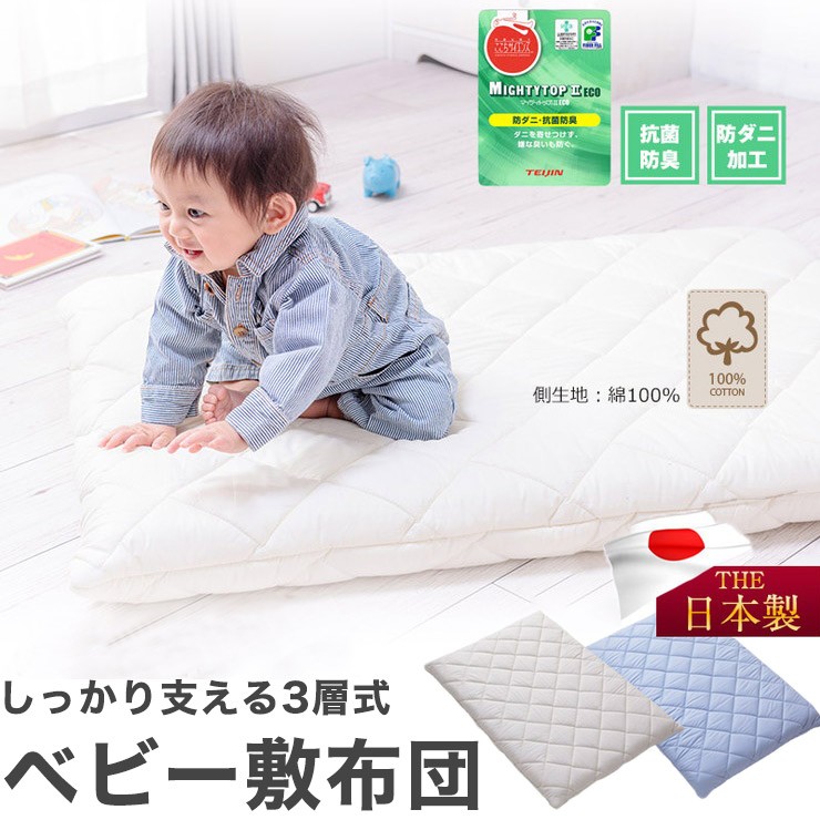 敷布団 子供用 しっかり支える3層式固綿 お昼寝敷きふとん 帝人マイティトップIIRs使用 キッズ敷布団 ベビーマットレス 子供 子ども ジュニア
